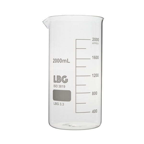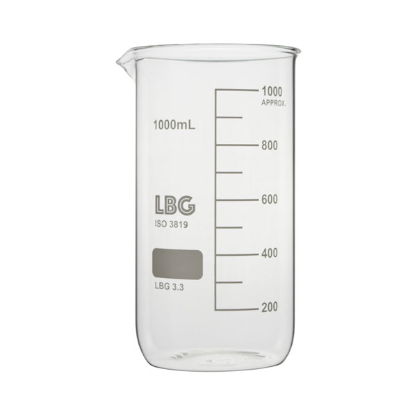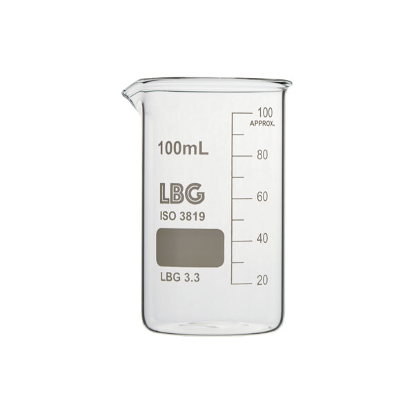 With graduations and a spout. Made of LBG 3.3 borosilicate glass. Complies with DIN 12331 and ISO 3819.