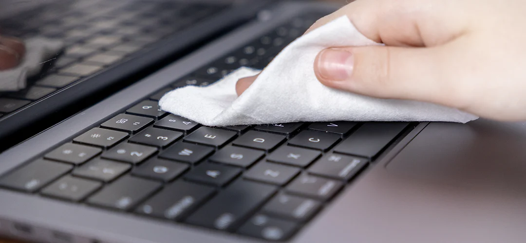 Clean the laptop’s casing and keyboard with a soft microfiber cloth. Stubborn stains or greasy residue on the keys and palm rest can be tackled with a slightly damp cloth. Preferably, use a small amount of isopropyl alcohol on the cloth – it evaporates quickly and leaves no residue. Avoid harsh cleaning agents on the screen; use only a slightly damp cloth (possibly with distilled water or a special screen cleaner ) on the laptop screen to prevent streaks and damage.